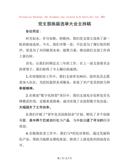 / 党支部换届选举大会主持稿