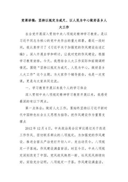 / 党课讲稿:坚持以规定为戒尺、以人民为中心做好县乡人大工作