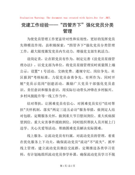 / 党建工作经验——“四管齐下”强化党员分类管理