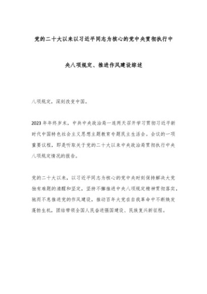 / 党的二十大以来以习总书记为核心的党中央贯彻执行中央八项规定、推进作风建设综述