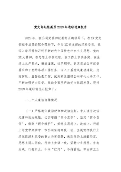/ 党支部纪检委员2023年述职述廉报告