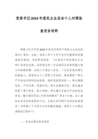 / 党委书记2024年度民主生活会个人对照检查发言材料