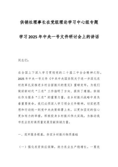/ 供销社理事长在党组理论学习中心组专题学习2025年中央一号文件研讨会上的讲话