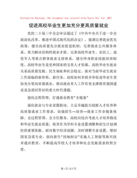 促进高校毕业生更加充分更高质量就业
