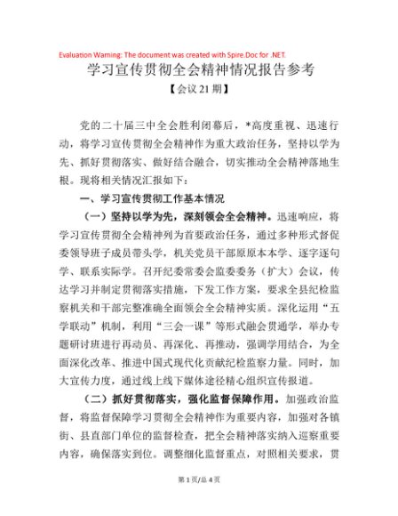 / 会议21期-学习宣传贯彻全会精神情况报告参考