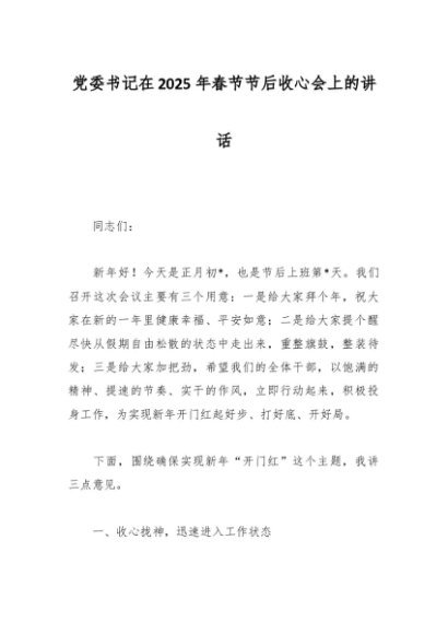 / 党委书记在2025年春节节后收心会上的讲话