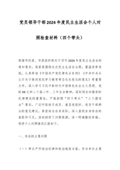 / 党员领导干部2024年度民主生活会个人对照检查材料(四个带头)