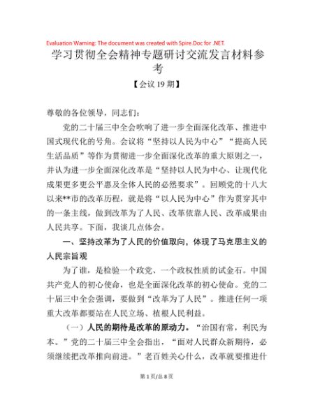 / 会议19期-学习贯彻全会精神专题研讨交流发言材料参考