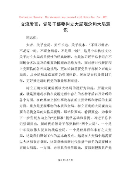 / 交流发言:党员干部要树立大局观念和大局意识