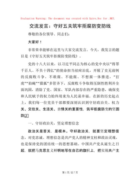 / 交流发言:守好五关筑牢拒腐防变防线