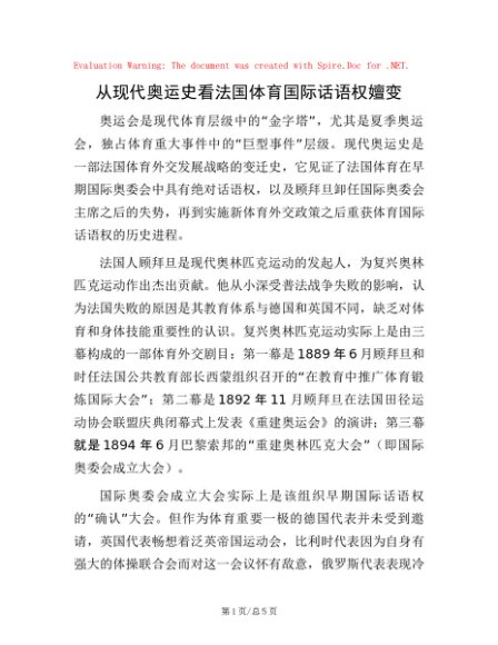 / 从现代奥运史看法国体育国际话语权嬗变