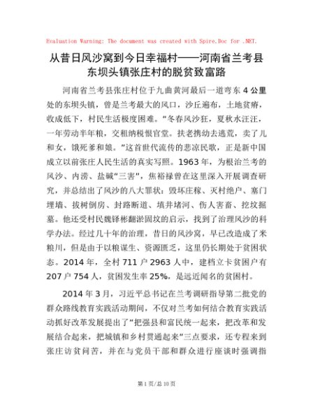 从昔日风沙窝到今日幸福村——河南省兰考县东坝头镇张庄村的脱贫致富路