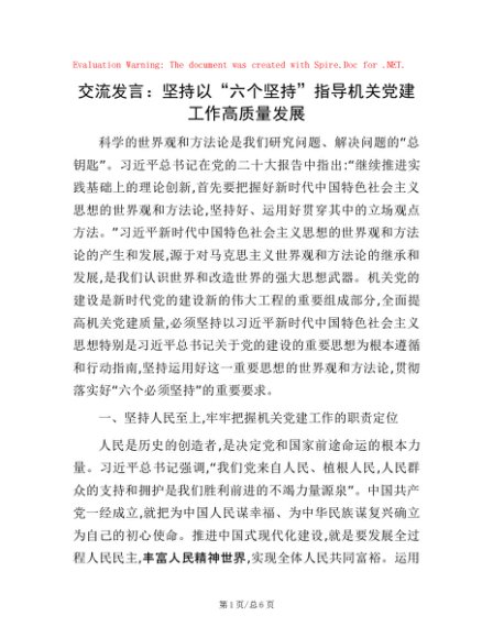 / 交流发言:坚持以“六个坚持” 指导机关党建工作高质量发展