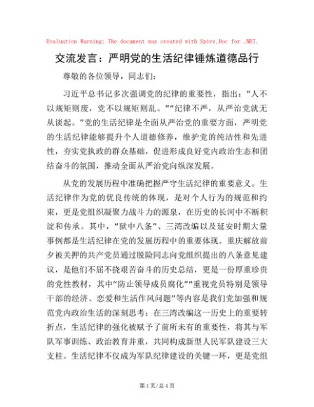/ 交流发言:严明党的生活纪律 锤炼道德品行