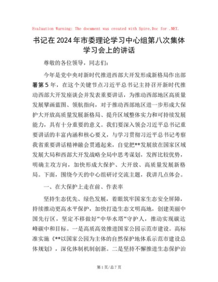/ 书记在2024年市委理论学习中心组第八次集体学习会上的讲话