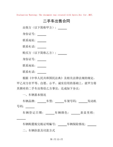 / 二手车出售合同