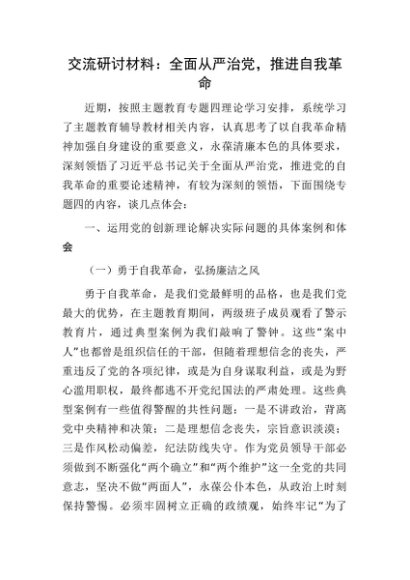 / 交流研讨材料:全面从严治党,推进自我革命