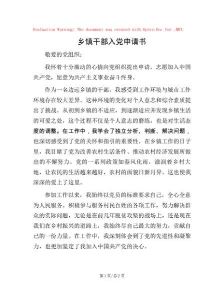 / 乡镇干部入党申请书