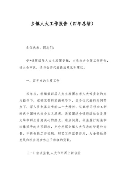 / 乡镇人大工作报告(四年总结)