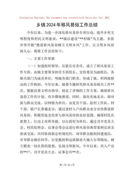 乡镇2024年移风易俗工作总结