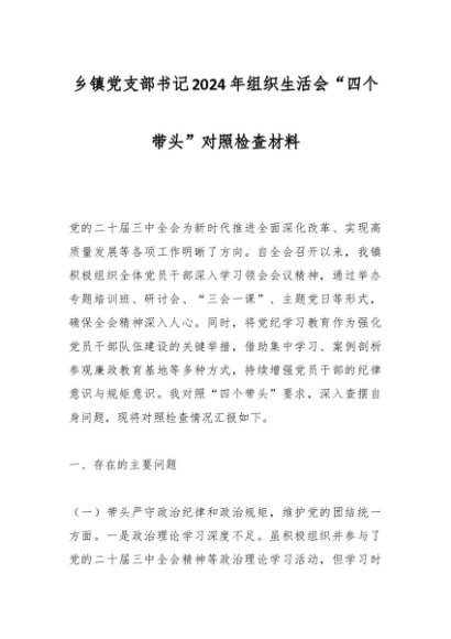 / 乡镇党支部书记2024年组织生活会“四个带头”对照检查材料