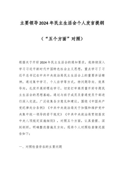 / 主要领导2024年民主生活会个人发言提纲(“五个方面”对照)