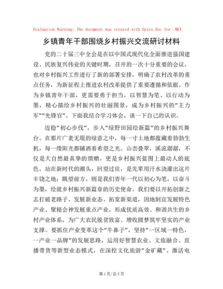 乡镇青年干部围绕乡村振兴交流研讨材料