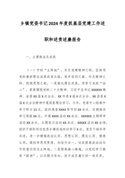 / 乡镇党委书记2024年度抓基层党建工作述职和述责述廉报告