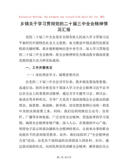 / 乡镇关于学习贯彻党的二十届三中全会精神情况汇报