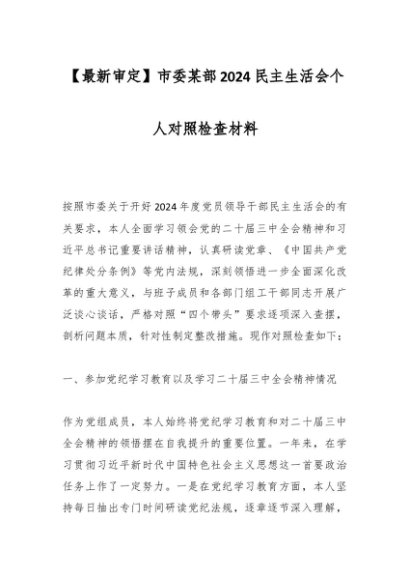 / 【最新审定】市委某部2024民主生活会个人对照检查材料