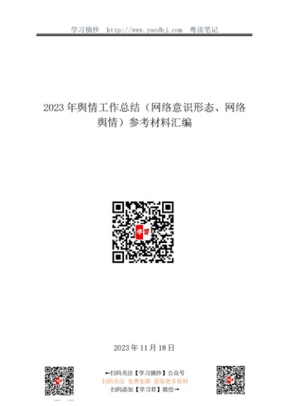 / 专题合集:2023年舆情工作总结(网络意识形态、网络舆情)参考材料汇编(55篇)