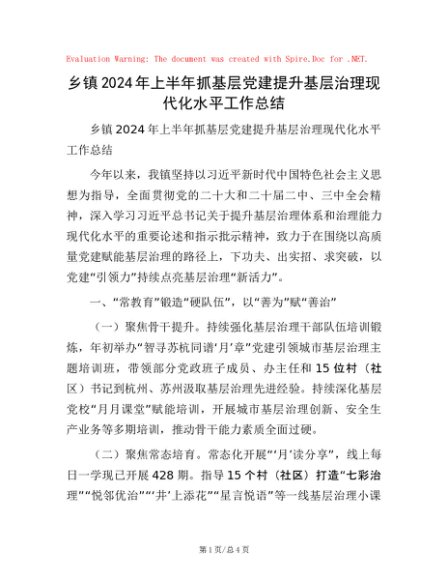 / 乡镇2024年上半年抓基层党建提升基层治理现代化水平工作总结