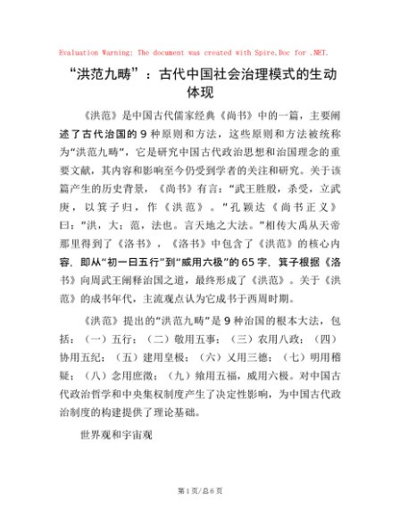 / “洪范九畴”:古代中国社会治理模式的生动体现