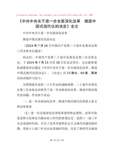 / 《中共中央关于进一步全面深化改革 推进中国式现代化的决定》全文