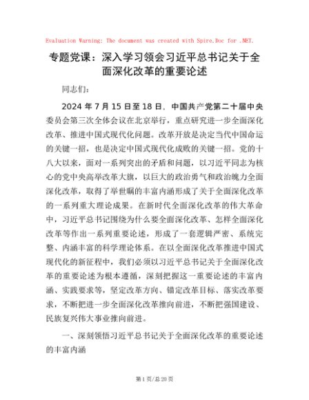 / 专题党课:深入学习领会习近平总书记关于全面深化改革的重要论述