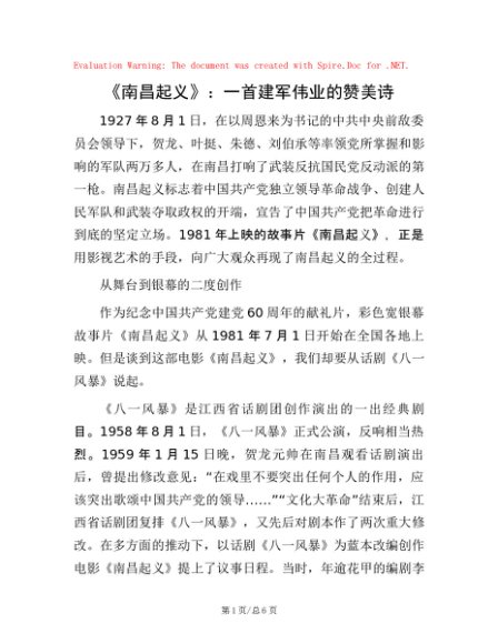 / 《南昌起义》:一首建军伟业的赞美诗