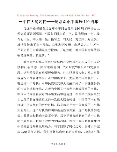 一个伟大的时代——纪念邓小平诞辰120周年
