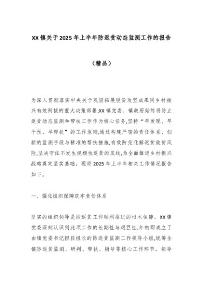 / XX镇关于2025年上半年防返贫动态监测工作的报告(精品)