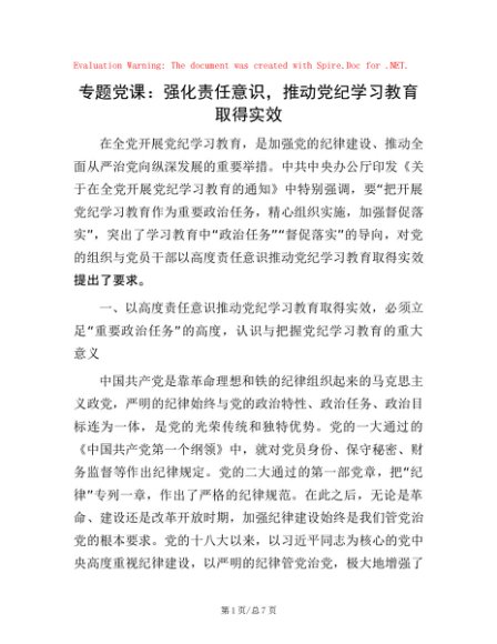 专题党课:强化责任意识,推动党纪学习教育取得实效