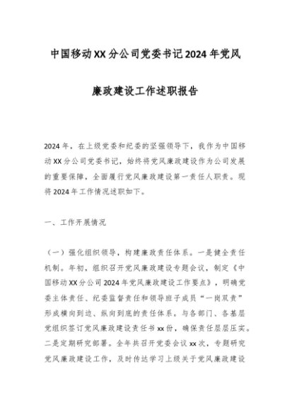 / 中国移动XX分公司党委书记2024年党风廉政建设工作述职报告