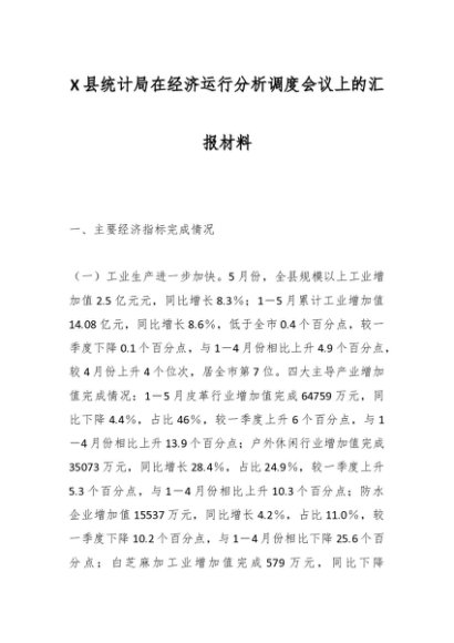 / X县统计局在经济运行分析调度会议上的汇报材料