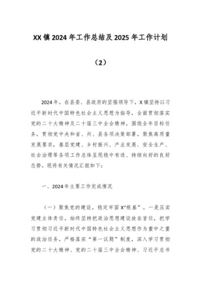 / XX镇2024年工作总结及2025年工作计划(2)