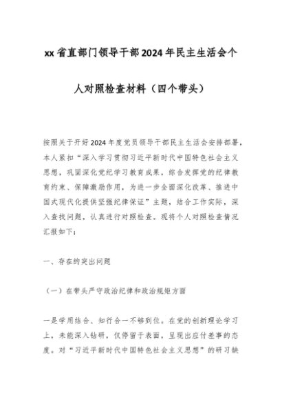 / xx省直部门领导干部2024年民主生活会个人对照检查材料