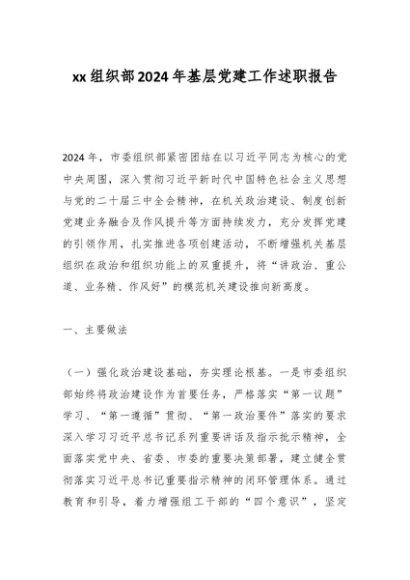 / xx组织部2024年基层党建工作述职报告