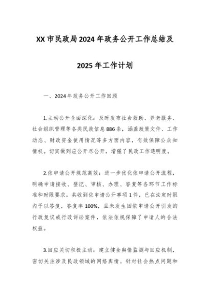 / XX市民政局2024年政务公开工作总结及2025年工作计划