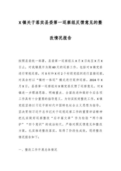 / X镇关于落实县委第一巡察组反馈意见的整改情况报告