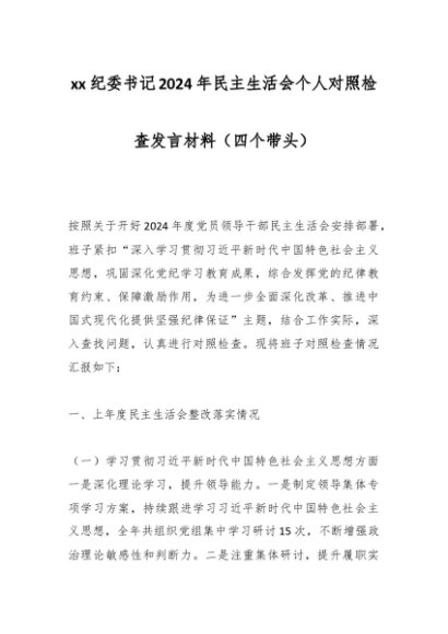 / xx纪委书记2024年民主生活会个人对照检查发言材料(四个带头)