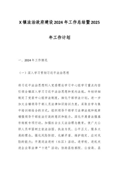 / X镇法治政府建设2024年工作总结暨2025年工作计划