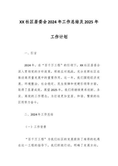 / XX社区居委会2024年工作总结及2025年工作计划