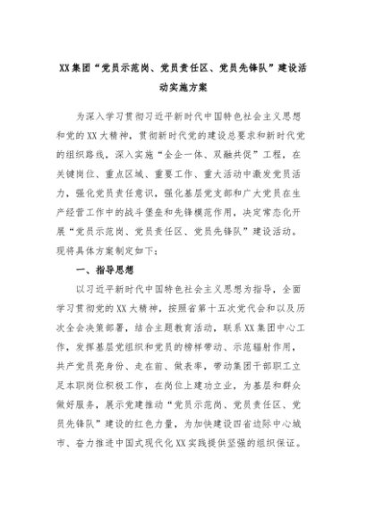 / XX集团“党员示范岗、党员责任区、党员先锋队”建设活动实施方案